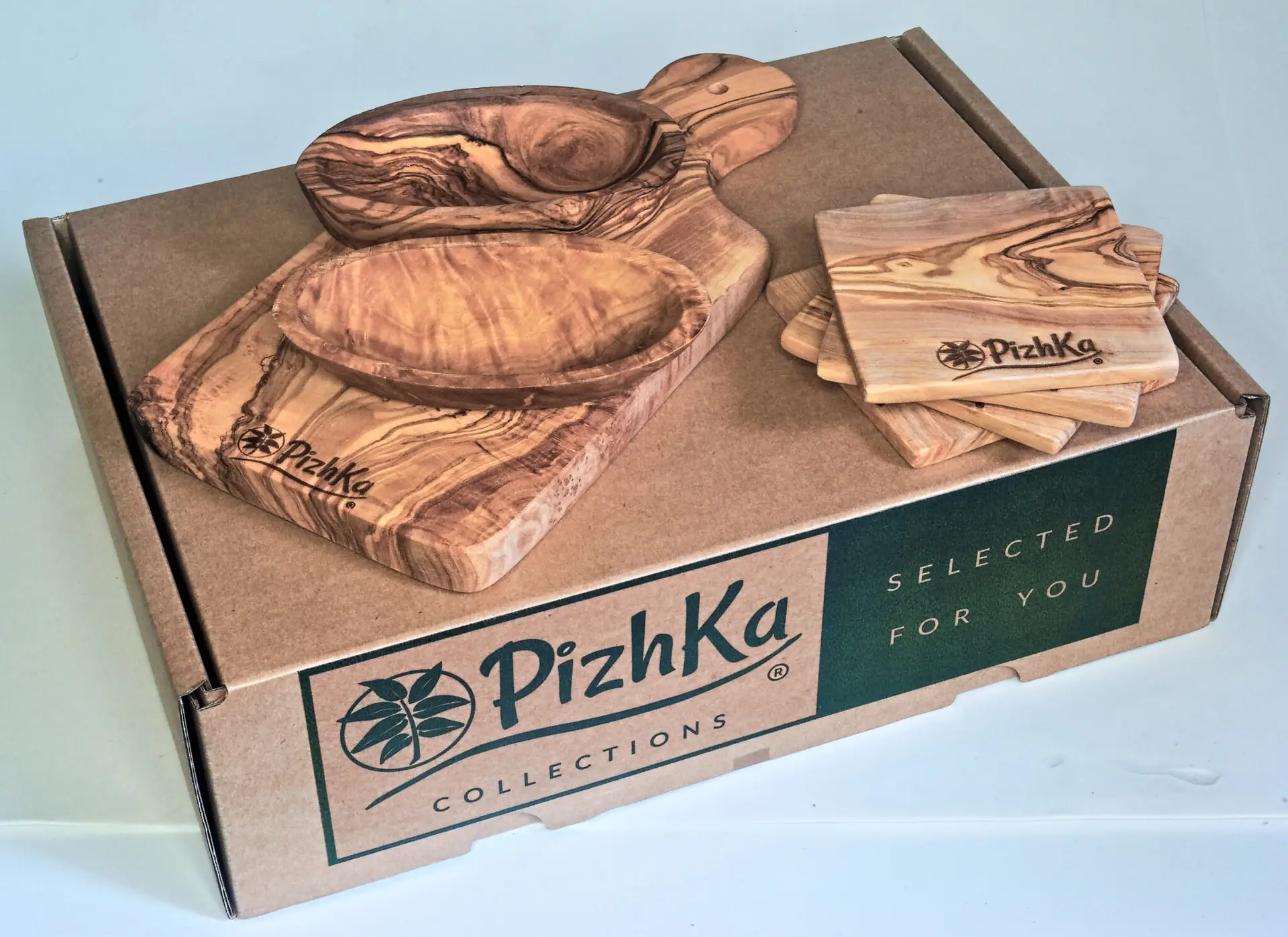Son 5 Sets distintos en Madera de Olivo. Ideal para Chefs, Cocineros o simplemente amantes de la Madera de Olivo y su uso en la cocina.