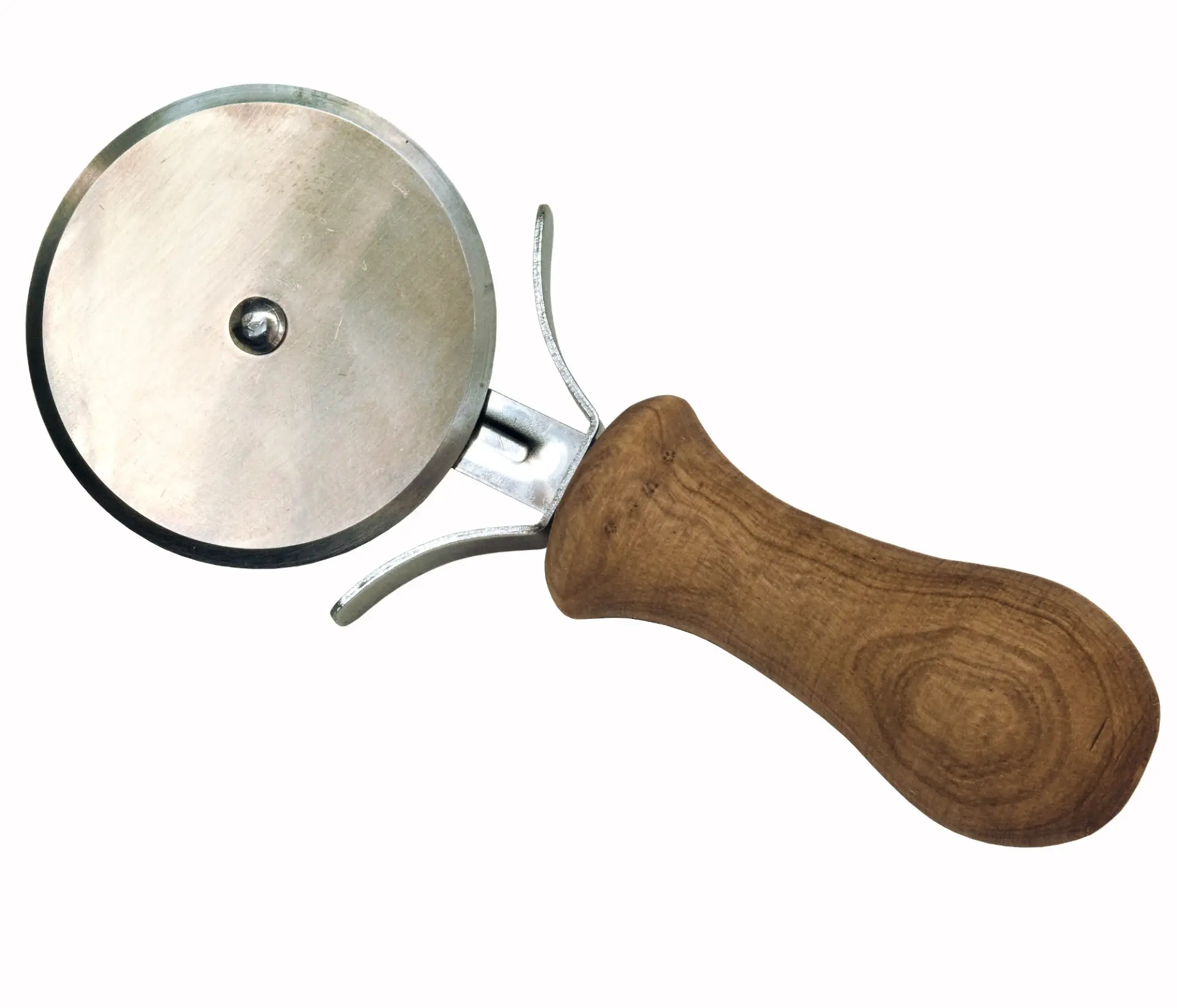 Cortapizza rotatorio con mango de madera, complementa el Kit Pizza